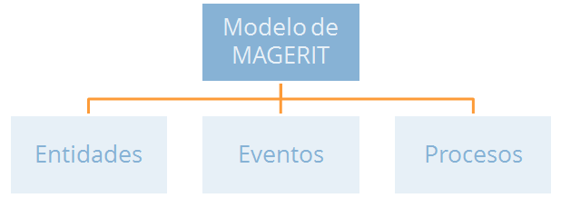 MAGERIT tiene una visión estratégica global de la Seguridad de los Sistemas de Información ISO 27001, esta visión comienza en un modelo de análisis y gestión de riesgos que comprende tres modelos: entidades, eventos y procesos como podemos ver: